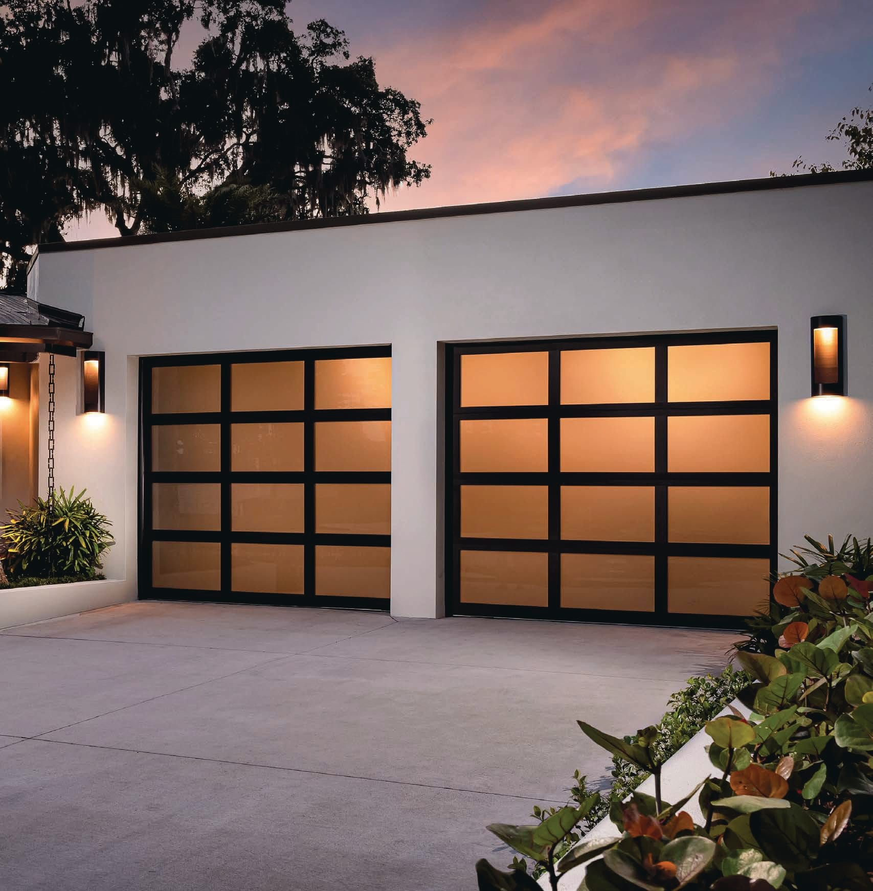 Design preferences continue to lean toward simplicity and openness. Black aluminum frame designs remain the most requested style across both residential and commercial projects, and full-view glass garage doors with large sectional panels and minimal horizontal bars are consistently popular among homeowners and builders pursuing clean curb appeal.
